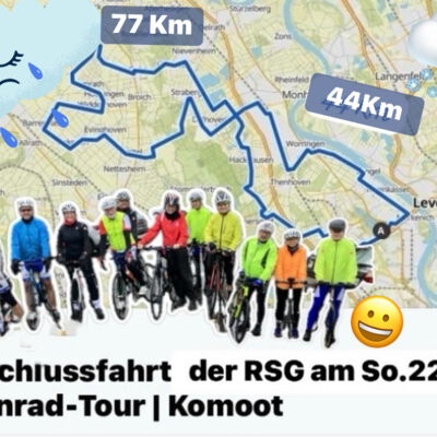 „Fahren wir doch einfach mal zum Startpunkt am Fühlinger See und schauen wer dort ist !“ Überlegt und getan und zu unserer aller Überraschung waren wir insgesamt zu elft am Start Zwei brachen allerdings nach den ersten Km ab , weil sie von der Anfahrt schon völlig durchnässt waren. Zwei schlossen sich zusammen für die kurze Strecke und die restlichen sieben fuhren die große Runde .
